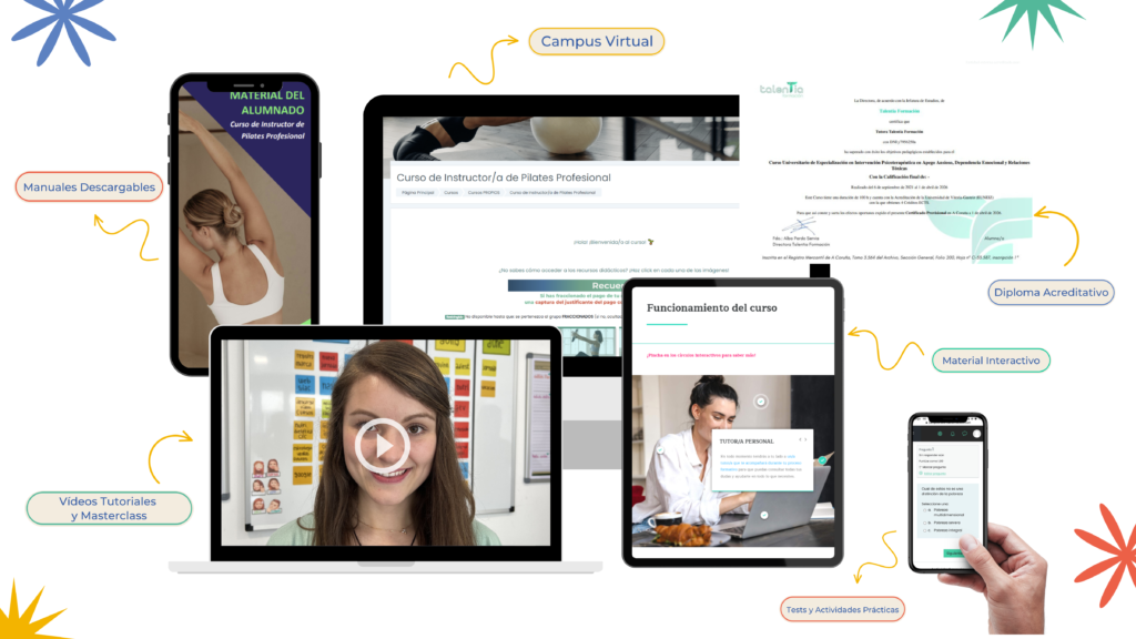 Este Curso de Instructor/a de Pilates Profesional de Talentia Formación está diseñado para ofrecerte una base sólida, rigurosa y adaptada a las exigencias del sector. A lo largo de la formación conocerás los fundamentos del método Pilates, su evolución y aprenderás a aplicarlo desde un enfoque profesional, integrando conocimientos fundamentales de anatomía, fisiología y biomecánica.